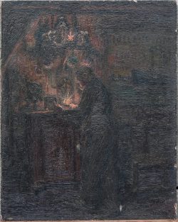 #234‘Huis met schildwachten’, gemengde techniek op karton. Getekend A. R. 1890. Met schade.