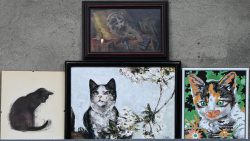 Lot of four frames with images of cats. Two reproductions and two paintings.Dim. 50/70 cmEstimate: € 20 / 30 -