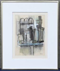 #240“Compositie met podium”. Gemengde techniek op papier.