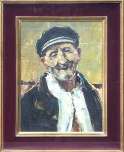 #100Period: 1904 - 1978“Portret van een oude schipper”. Olieverf op gemaroufleerd doek, Gesigneerd.