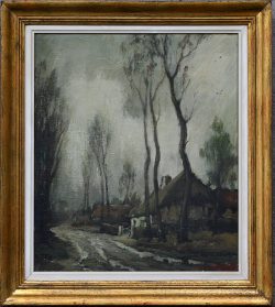 #249“Veldweg met hoeve”. Olieverf op doek. Gesigneerd.