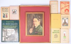 Nine books by Felix Timmermans including 'Pallieter', 'Boerenpsalm', 'Het kindeken jezus', 'Adriaan Brouwer', and others. Also included is a portrait of Felix Timmermans, drawn by Colders.Dim. 30/22 cmEstimate: € 120 / 150 -