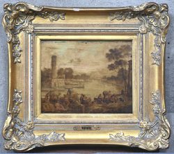 'Harbor Scene', oil on panel. With an unverified attribution to Joseph Vernet.Dim. 26/33 cmEstimate: € 100 / 150 -