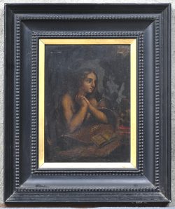 'Mary Magdalene in penitence’, an antique oil painting on panel. In baroque style, not signed.Dim. 34/25 cmEstimate: € 200 / 250 -