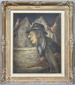 #139Period: 1872 - 1953‘Portret van een oude man in profiel’, olieverf op doek. Getekend F. Gogo, ‘92. Met enkele herstellingen aan het doek.