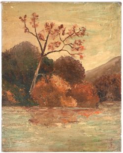 'Autumn landscape with farmstead', oil on canvas. Signed illegibly.Dim. 35/30 cmEstimate: € 25 / 40 -