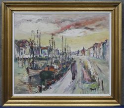 'Fishing Boats at Anchor', oil on canvas. A post-impressionist piece, signed Decoene M.No longer availableDim. 50/40 cmEstimate: € 60 / 80 -