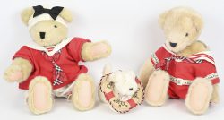 #33Twee middelgrote vintage teddyberen. Eén gekleed als matroos, met label ‘Tinkie’s Bears’ en één met label van privéverzameling ‘EB’.