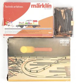 #84Een grote partij Märklin mini-klub sporen, kunststof. Toegevoegd een wagon, 44810, ‘Blanco containerwager. Compleet met stiften in OVP.