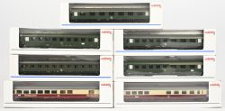 #89Zeven Märklin wagons voor personenvervoer. 43201, 2X 43211, 43221, 43231, 43261 en 43266. In OVP.