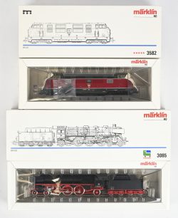 #109Märklin 3582 H0 Diesellocomotief BR 221 van de DB & Märklin 3085 H0 Stoomlocomotief met tender BR 003 van de DB. In OVP.