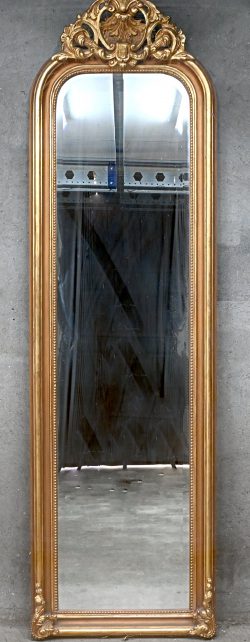 A cut mirror, gilded frame with crest.Dim. 169 x 89 cmEstimate: € 280 / 320 -