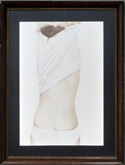 'Seated nude,' a study in brown and black chalk. Signed by Robert Dufloc.Dim. 29/22 cmEstimate: € 40 / 60 -