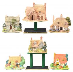 #260Zes ‘Lilliput Lane’ huisjes. In OVP, de meeste met attest. ‘Cowslip Cottage’, ‘Culross House’, ‘The Pineapple House’, ‘Marigold Meadow’, ‘The Spindles’ & ‘Lace Lane’.