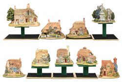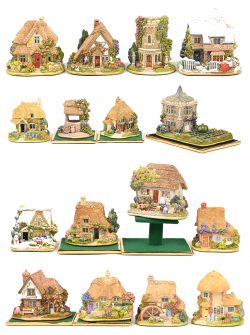 #267Negen ‘Lilliput Lane’ huisjes. In OVP, de meeste met attest. ‘The Old Forge’, ‘The Poppies’, ‘Birchwood Cottage’, ‘Fichinfields’, ‘Flowerpots’, ‘Pipit Toll’, ‘Yorkvale Cottage’, ‘Amisfield Tower’ & ‘Lilac Lodge’.