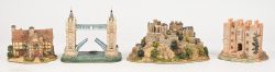 #249Vier ‘Lilliput Lane’ huisjes van de reeks ‘Britain’s Heritage’. In OVP, de meeste met attest. ‘Shakespeare’s birthplace’, ‘Hampton Court Palace’, ‘Tower Bridge’ & ‘Edinburgh Castle’.