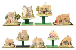 #255Negen ‘Lilliput Lane’ huisjes. In OVP, de meeste met attest. ‘Smuggler’s Rest’, ‘Dad’s Potting Shed’, ‘The Sandcastle’, ‘Sail Away’, ‘Chill Out’, ‘With Thanks’, ‘The Toadstool’, ‘The White Hart’ & ‘I-Cycle’.