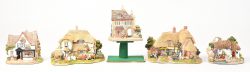 #271Vijf ‘Lilliput Lane’ huisjes. In OVP, de meeste met attest. ‘Tudor Merchant’, ‘Catmint Cottage’, ‘Sore Paws’, ‘St. Govans Chapel’ & één model uit de reeks ‘Paint Your Own, High Roding’.