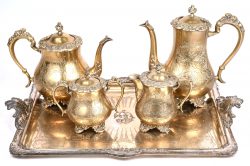 #201Een vierdelig koffie en theestel van verzilverd metaal. In Georgian stijl. Gemerkt.