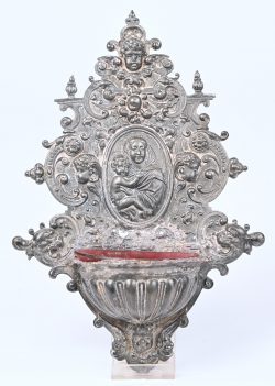 A silver holy water stoup dated 1896, Louis XV style. 205 grams.Dim. 26 x 15 x 6 cmEstimate: € 300 / 400 -