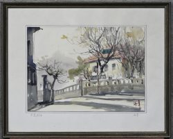 "Village View". Watercolor on paper, signed. Japanese work.Dim. 25 x 35 cmEstimate: € 60 / 80 -