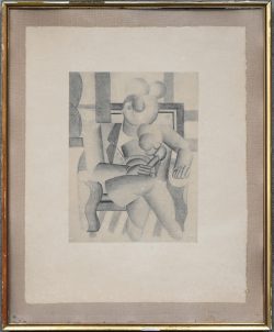 #402“Studie van de roker”. Een litho op papier. Draagt monogram in de plaat “F.L.”, naar Fernand Léger. Uit het album "Contrastes". Ed. Le Vent d'Arles, Parijs. Bewerkt in 1959 onder toezicht van Nadia Léger en beperkt tot 300 exemplaren.
