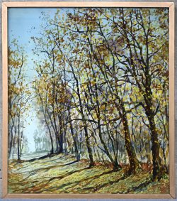 "Bosdreef", an églomisé, oil on glass, signed J.G. Beernaert.Dim. 80 x 70 cmEstimate: € 120 / 180 -
