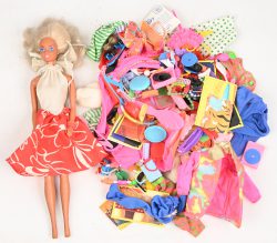 #196Een jaren 80 Barbiepop met een lot kleding.
