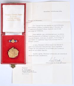 A gilded medal of the CSMS Prague for merits in the field of friendship and cooperation with Czechoslovakia. With accompanying case.Dim. 4 x 4 cmEstimate: € 80 / 120 -