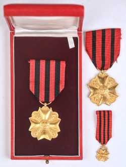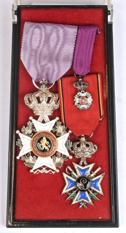 An officer’s cross of the Order of Leopold, as well as the miniature version thereof, a Leopold II Enfants de Troupe 1895Dim. 6.5 x 4 cmEstimate: € 80 / 120 -