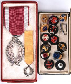 A lot of medals comprising a Belgian Order of Labour, 1948/63, precaution, providence, together with a small lot of badges and medals.Dim. Ø 6 cmEstimate: € 30 / 50 -