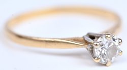 #110Een 18 kt wit en geelgouden ring bezet met een solitair van +- 0,30 ct.