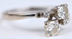 #220Een 18 kt witgouden ring bezet met diamanten met een gezamenlijk gewicht van +- 0,50 ct.