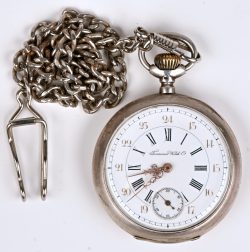 #20Een zilveren zakhorloge, Tavannes watch & Co, werkend, gemerkt 800.
