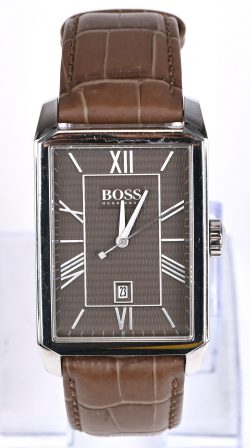 A wristwatch, marked Boss, with a leather strap.Dim. 4 x 3 cmEstimate: € 100 / 150 -
