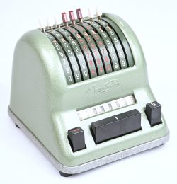 #187Een vintage rekenmachine, Triumphator, made in Germany.