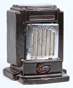 An enameled cast-iron money box, marked Ciney.Dim. 11 x 9.5 x 7 cmEstimate: € 20 / 30 -