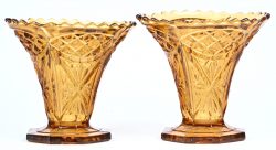 A set of 2 pressed glass vases, Art Deco, marked ‘Made in Belgium’ on the base.Dim. h 18 x Ø 19 cmEstimate: € 20 / 40 -