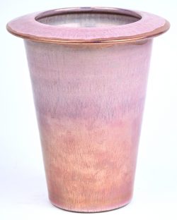 #186Een lichtpaarse vintage keramische vaas, gemonogrammeerd.