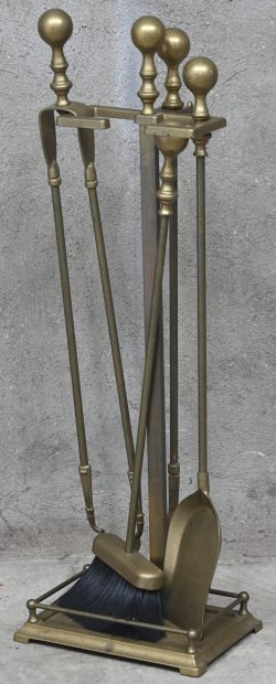 #336Een messingen haardstel met bijhorende staander.