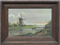 “Landscape with mill”, a painting, oil on panel, signed A. Swanenberg and dated ’77.Dim. 17.5 x 27 cmEstimate: € 20 / 30 -