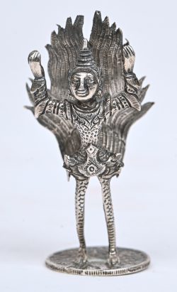 #51Een zilveren beeldje van Garuda, de vogelgod. Indisch werk. 55 g. AR54.