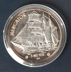 #14Een zilveren penning, gemerkt 925, met aan één zeide Mercator, 3 mei 1936 en de andere zeide Damiaan 1889-1989.